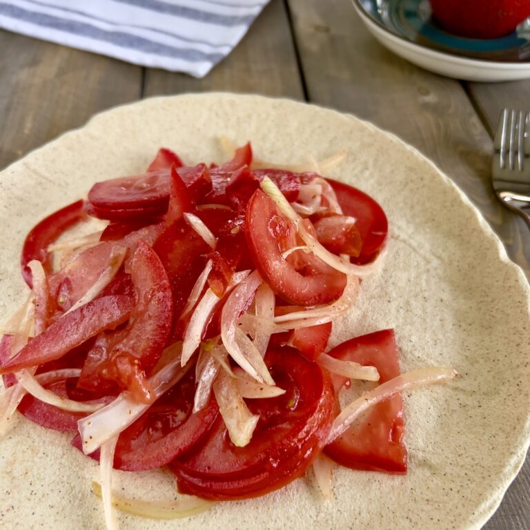 Яйца куриные, лук репчатый, помидоры, масло подсолнечное, соль, зелень укроп.