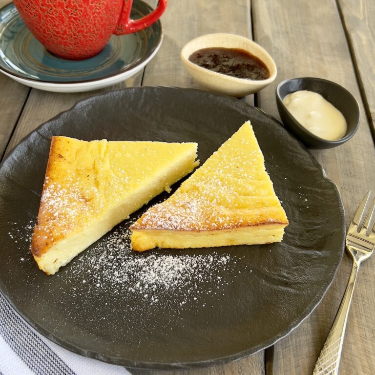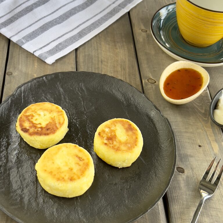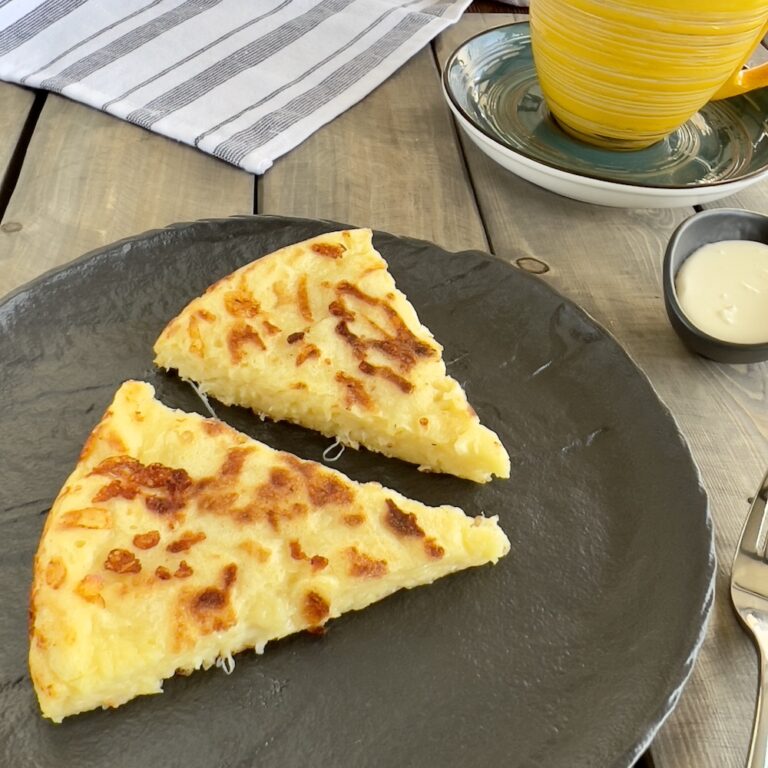Творог, яйца куриные, крупа манная, соль, сахар. Подается со сметаной.