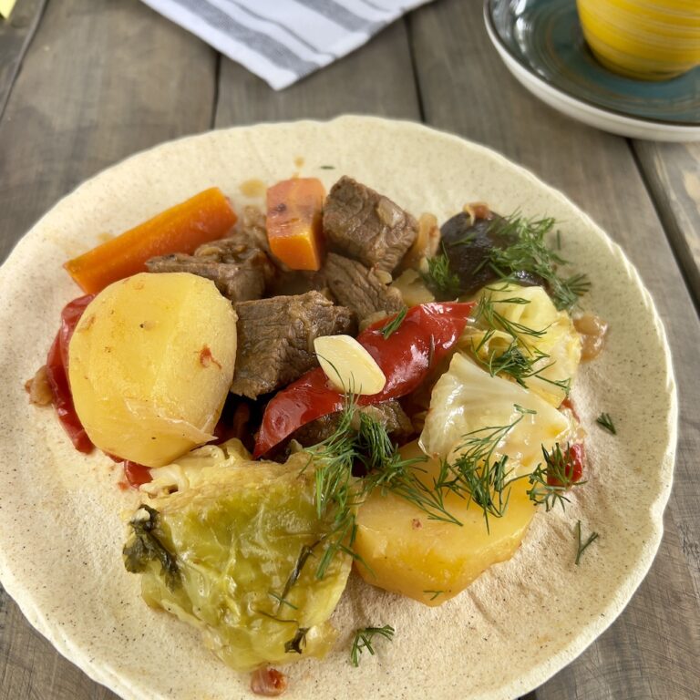 Говядина грудинка, жир бараний курдючный, лук репчатый, морковь, помидоры, картофель,