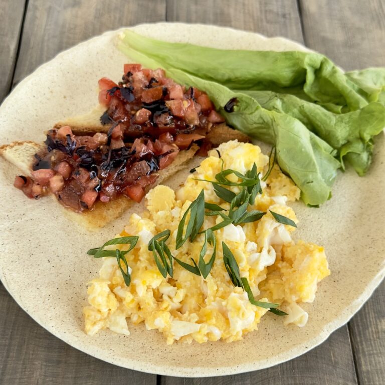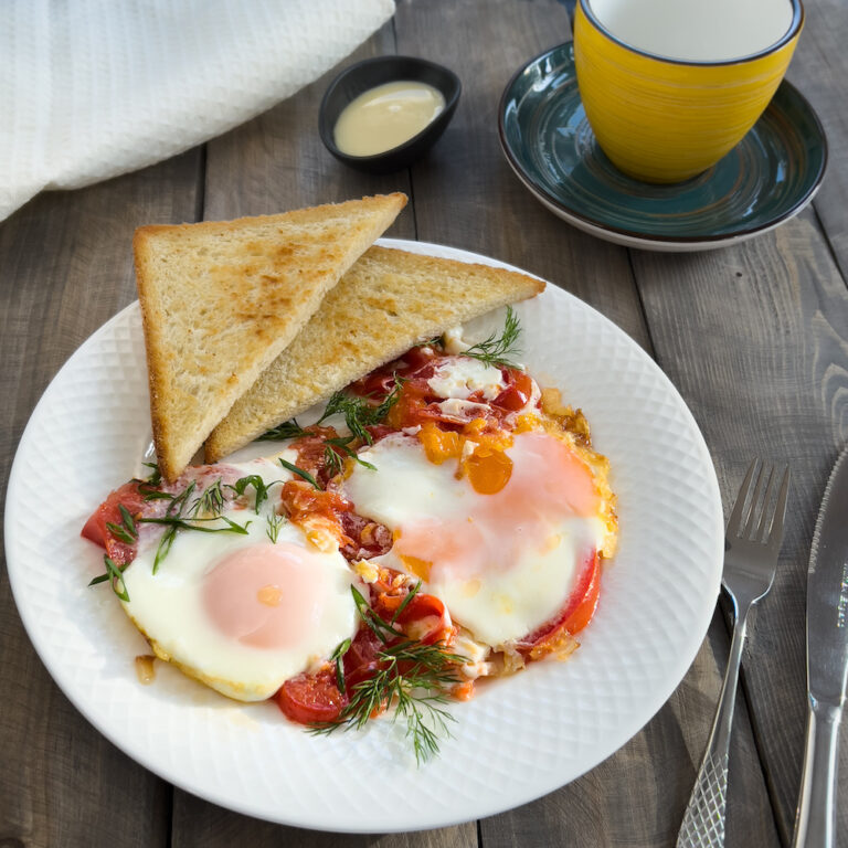 Яйца куриные, помидоры, хлеб тестовый, бальзамический крем-соус, масло сливочное, масло