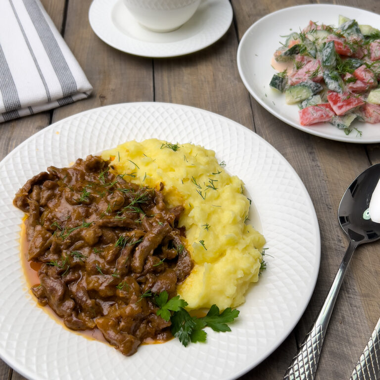 Говядина вырезка, картофель, лук репчатый, сыр голландский, майонез, масло оливковое,