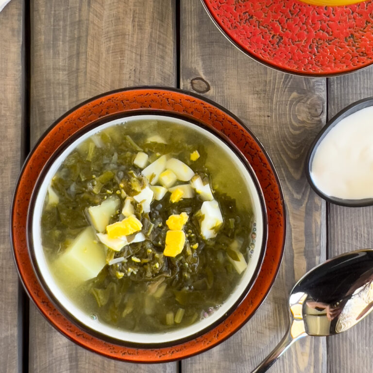 белокочанная, соль, перец черный молотый. Бульон: сахарные кости, вода. Подается с чесночной гренкой и сметаной.