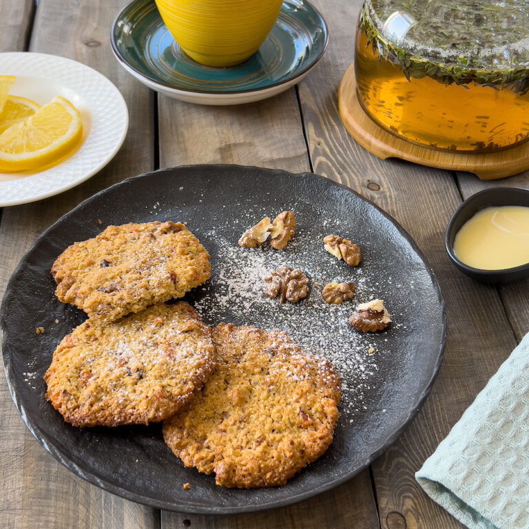 Мука пшеничная, масло сливочное, яйца куриные, сахар, орех грецкий, изюм