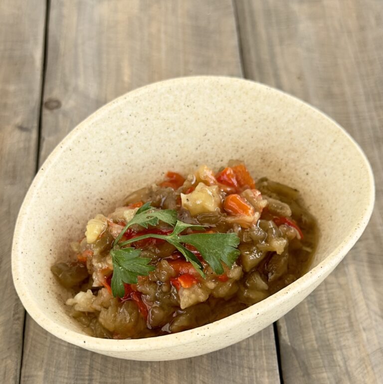 Баклажаны, перец болгарский сладкий, чеснок, сок лимона, масло оливковое, сахар,